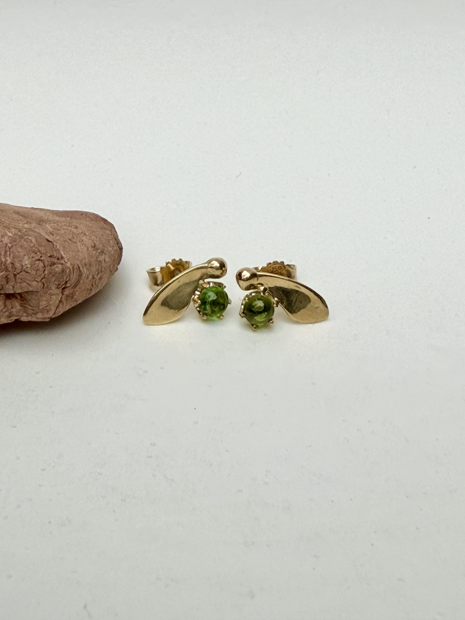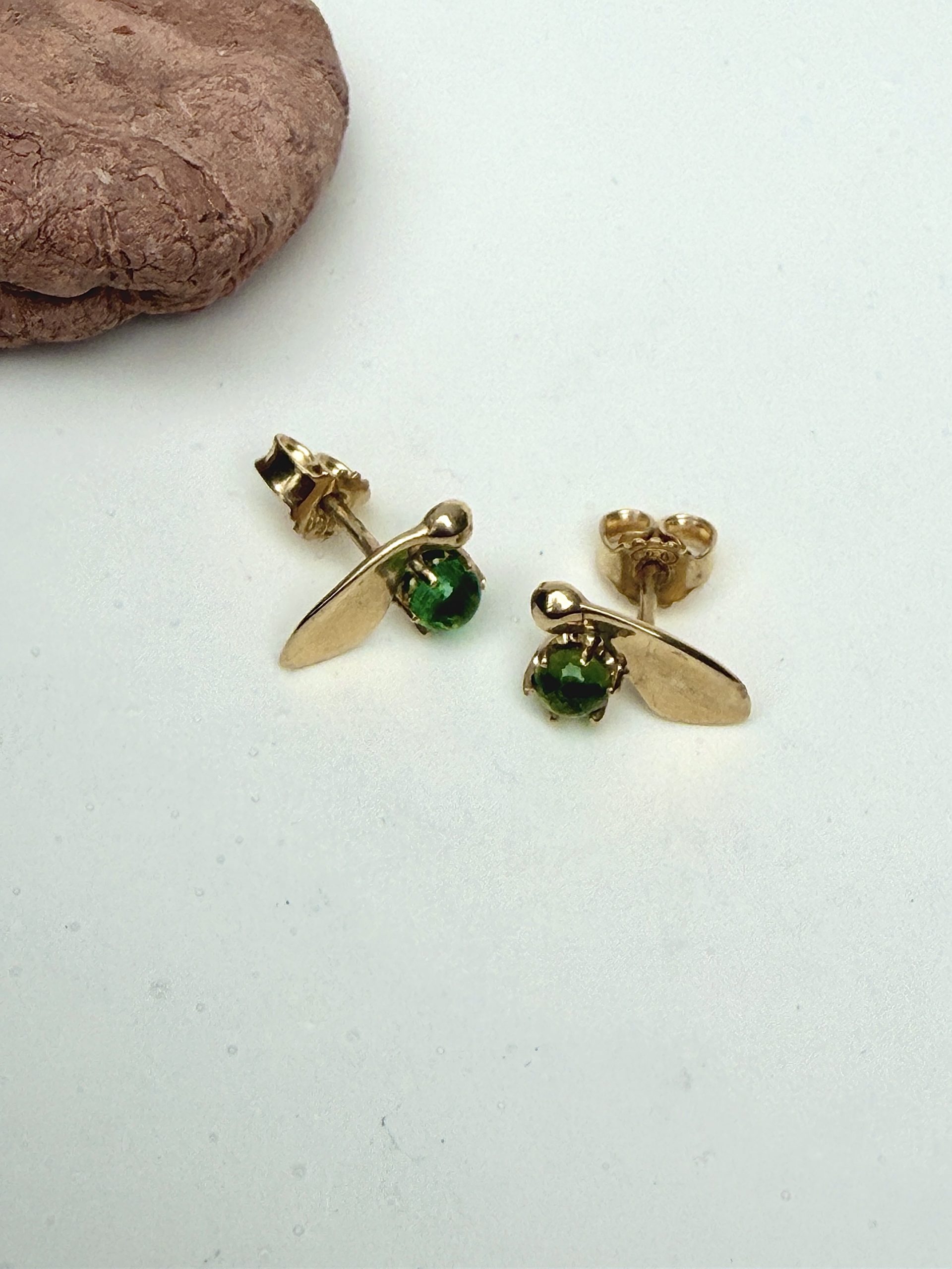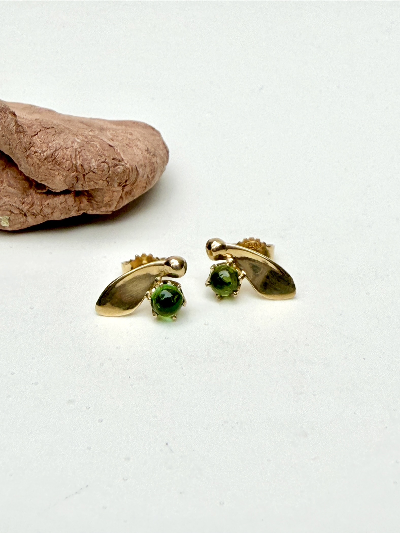 18 karat gold stud earrings with green Tourmalin cabochons, set in 6 prong setting.