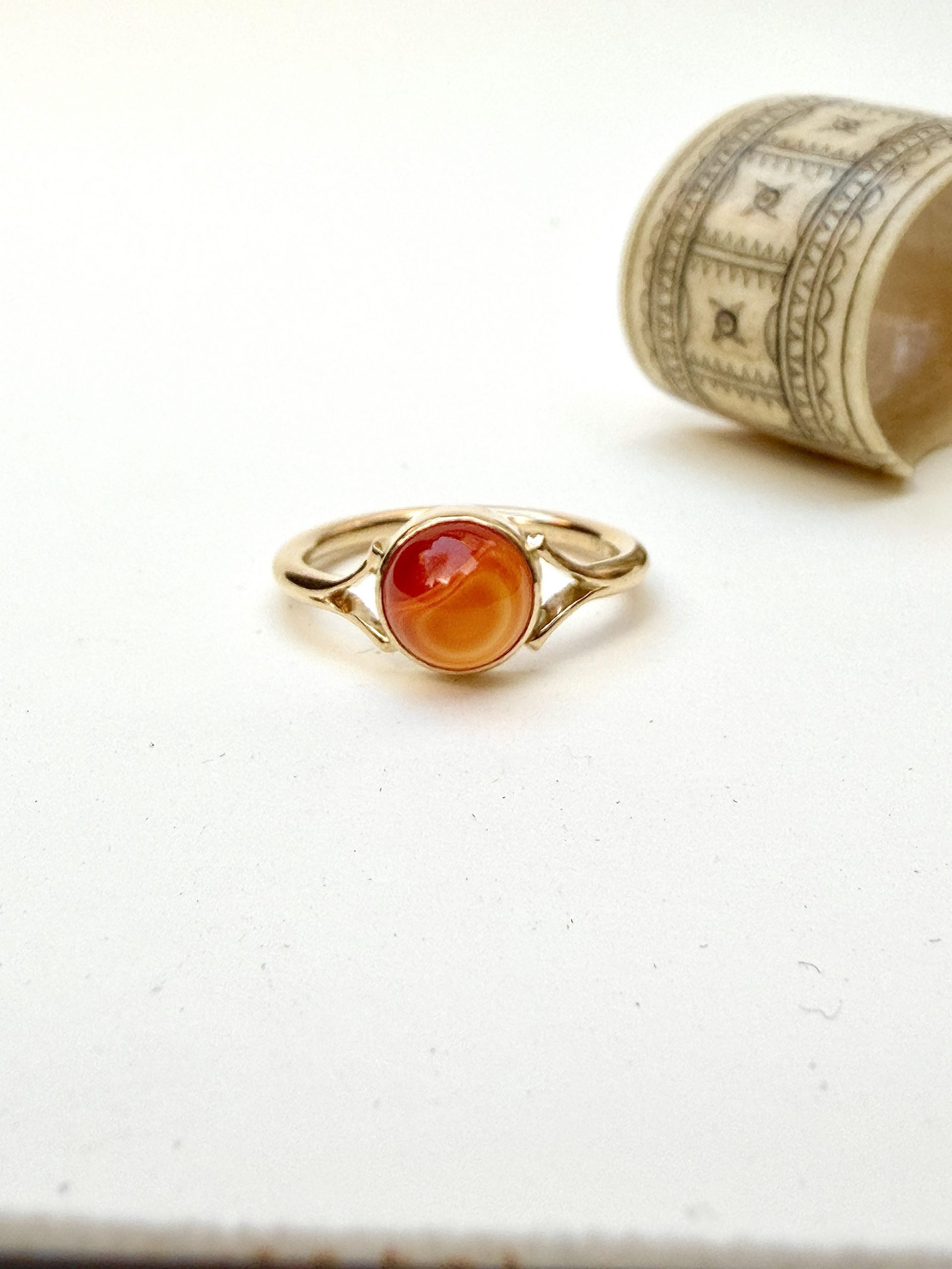 18 karat gold with 1,9 carat cabochon cut Carnelian.