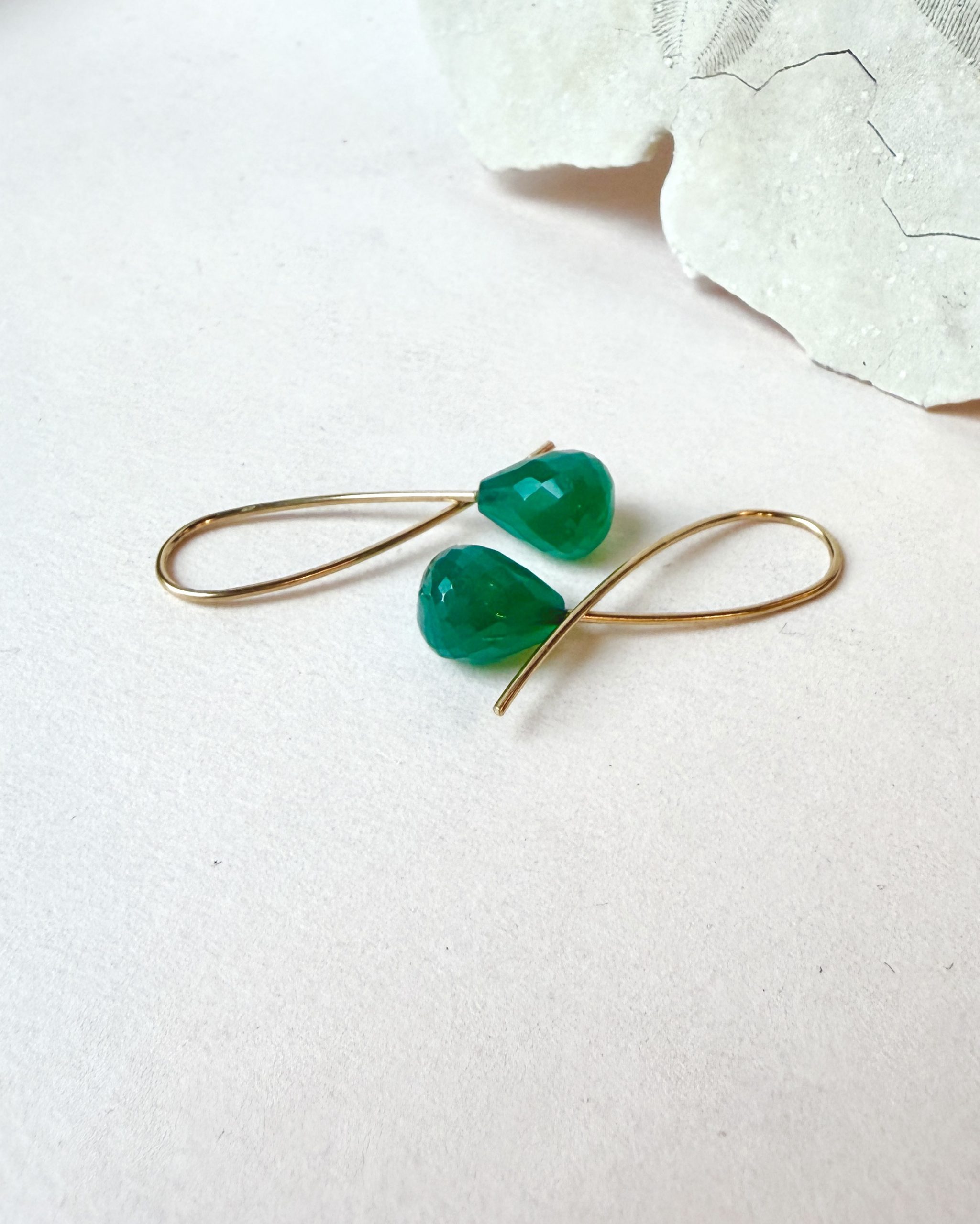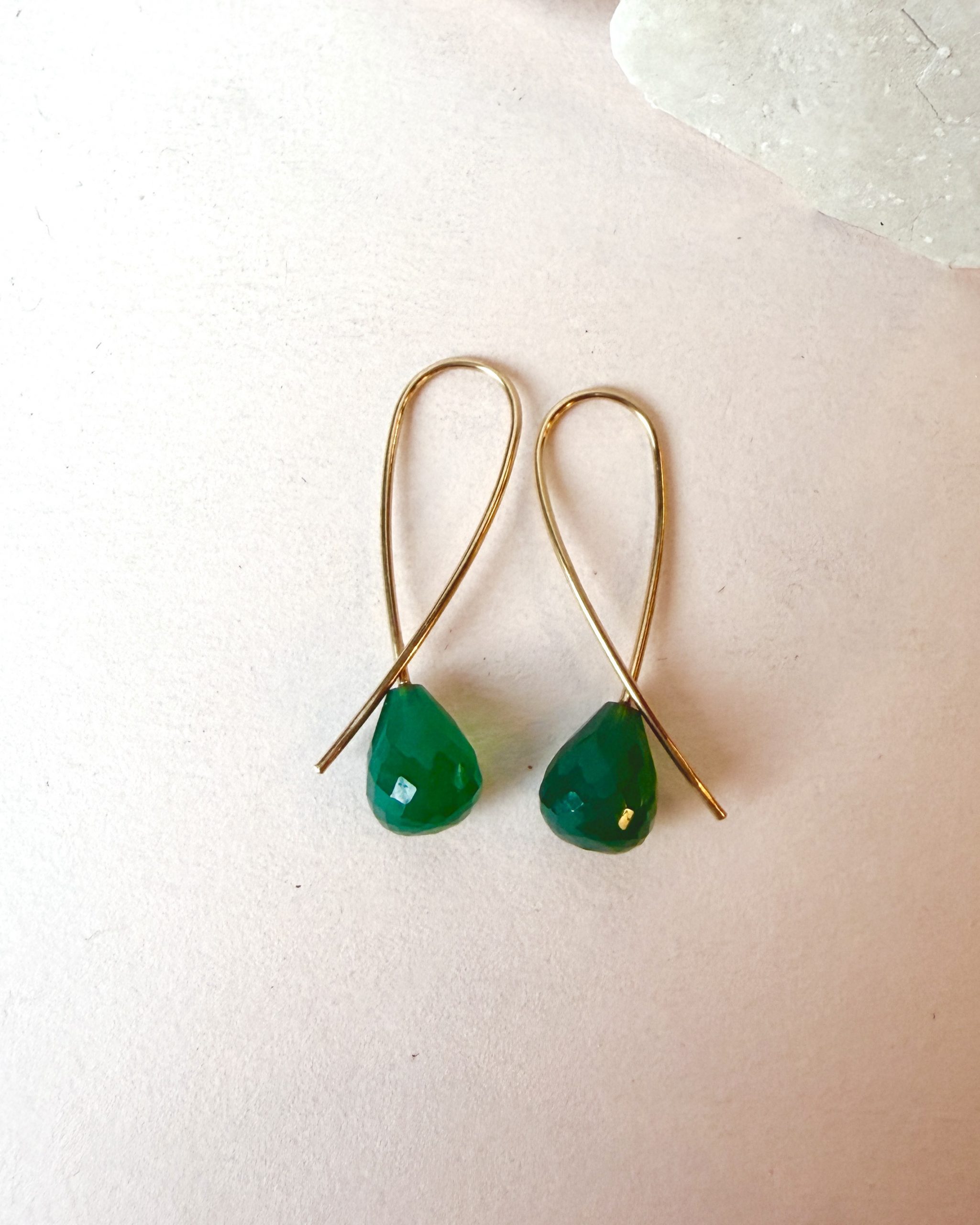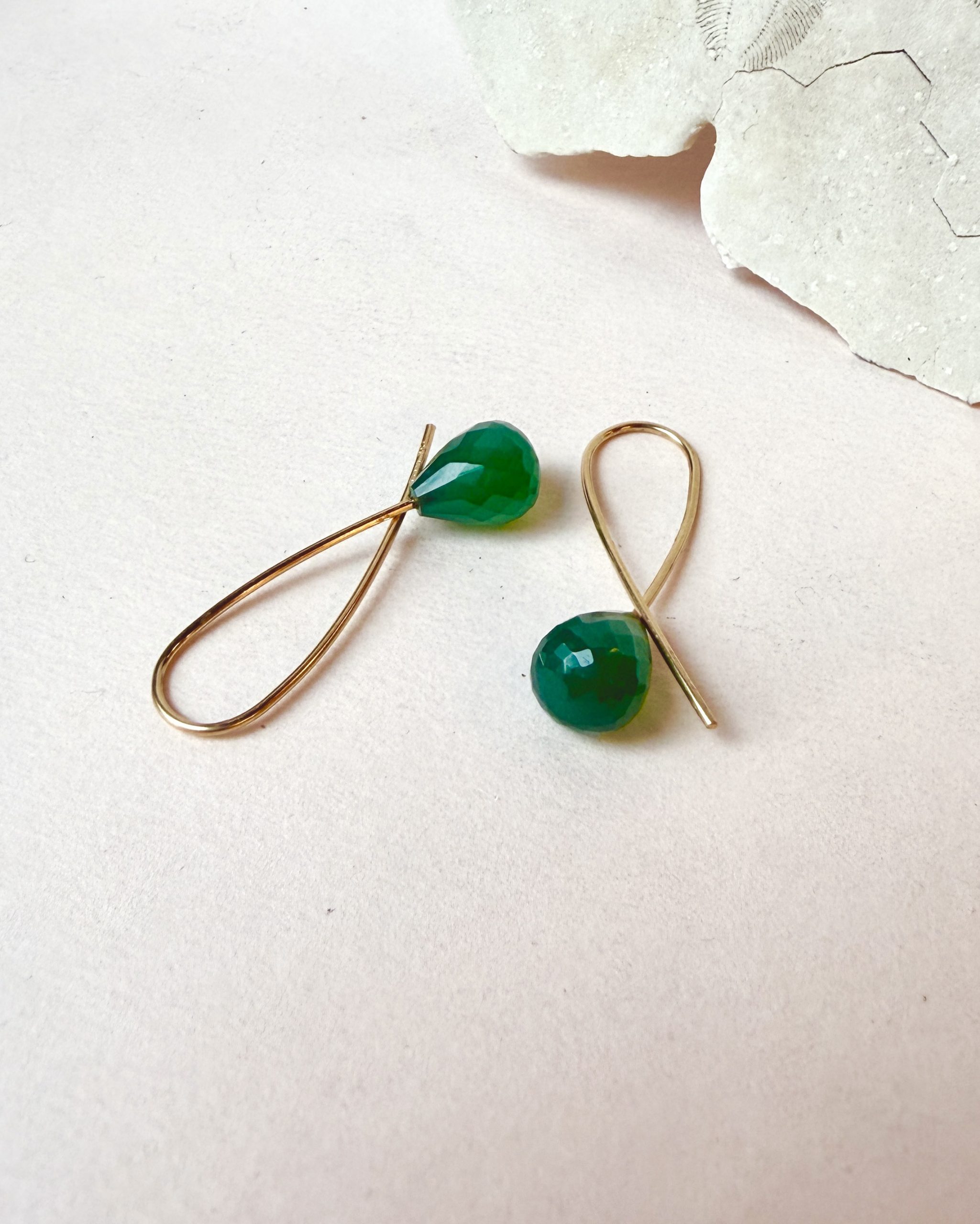 Green Agate with polished facets on handmade 18 karat gold SLØJFE earrings.