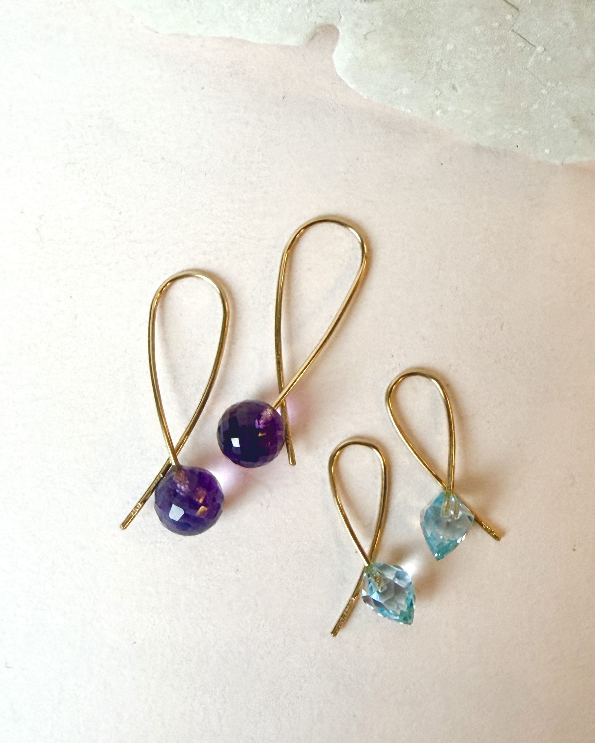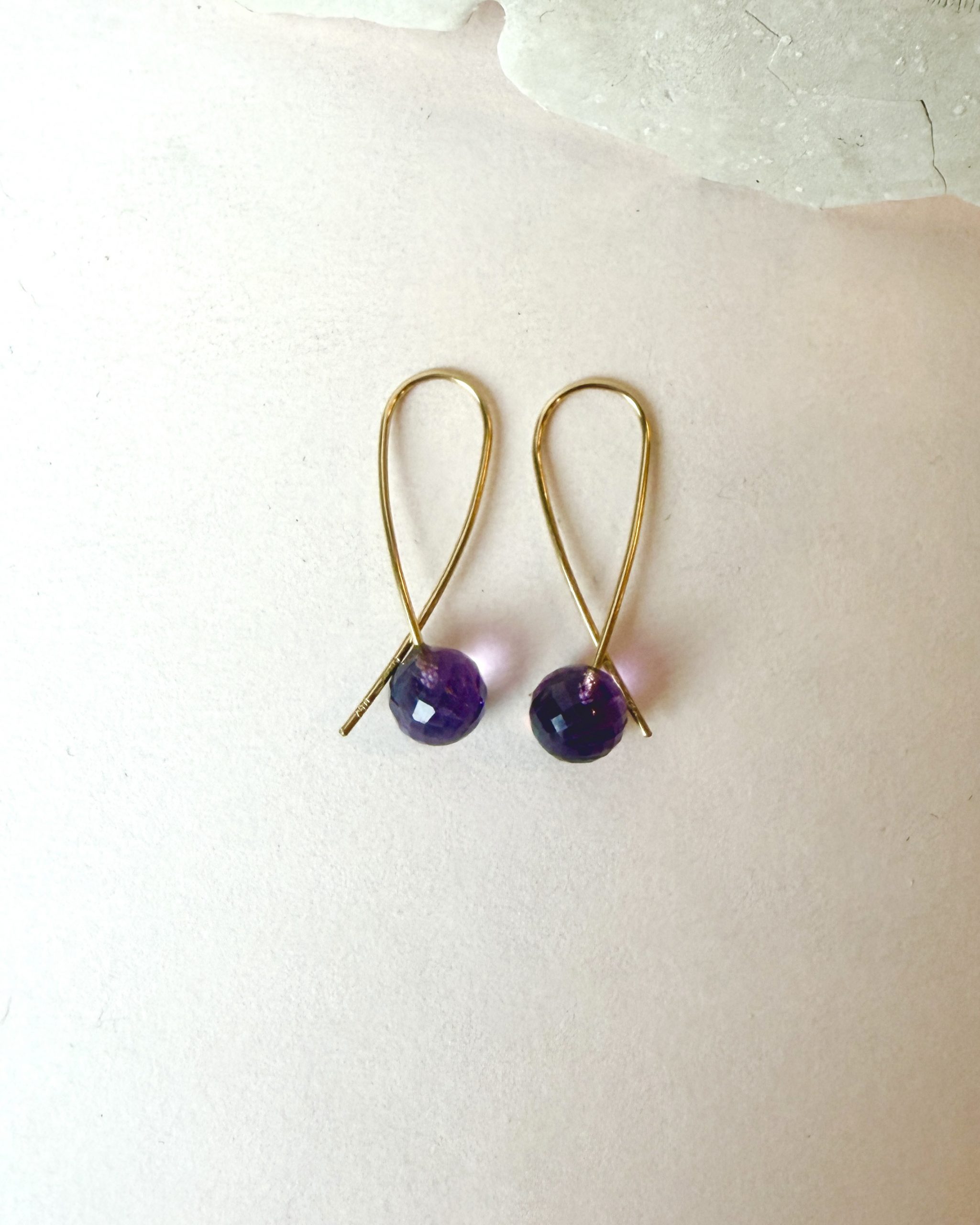 Purple Amethyst with polished facets on handmade 18 karat gold SLØJFE earrings.