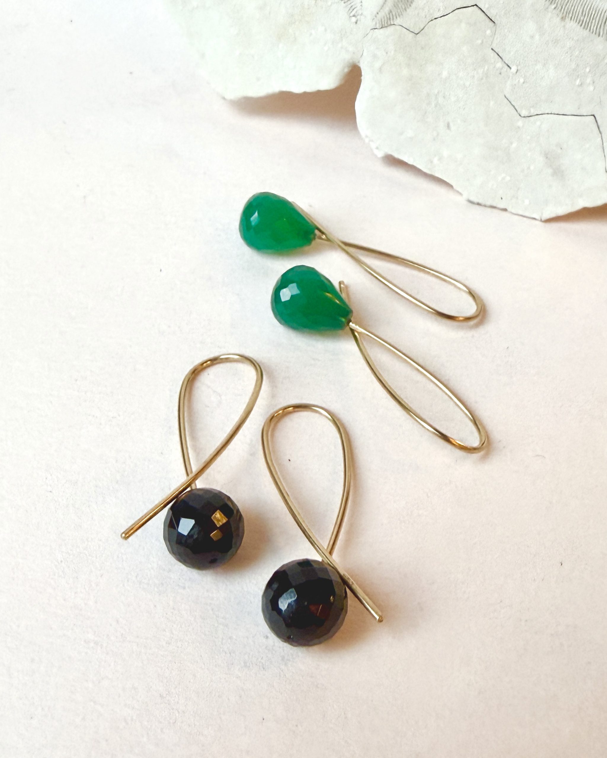Black Onyx with polished facets on handmade 18 karat gold SLØJFE earrings.