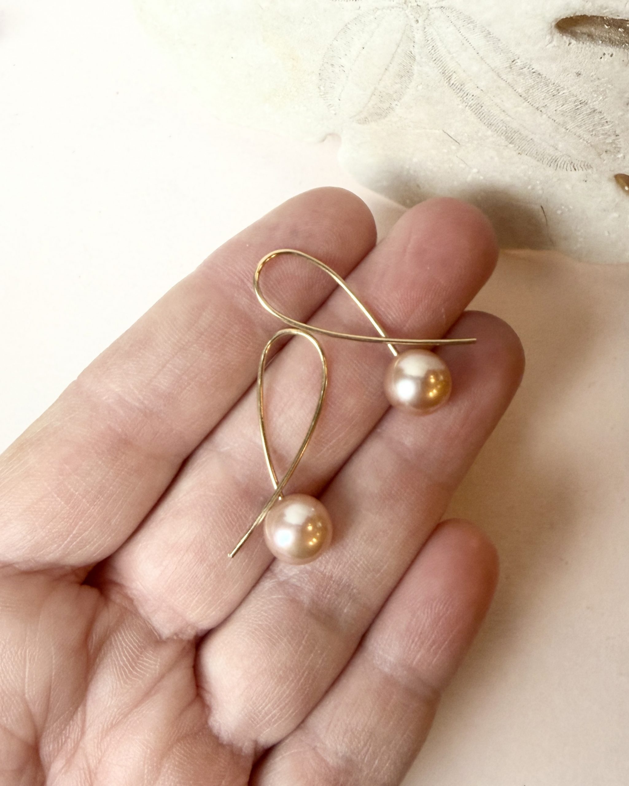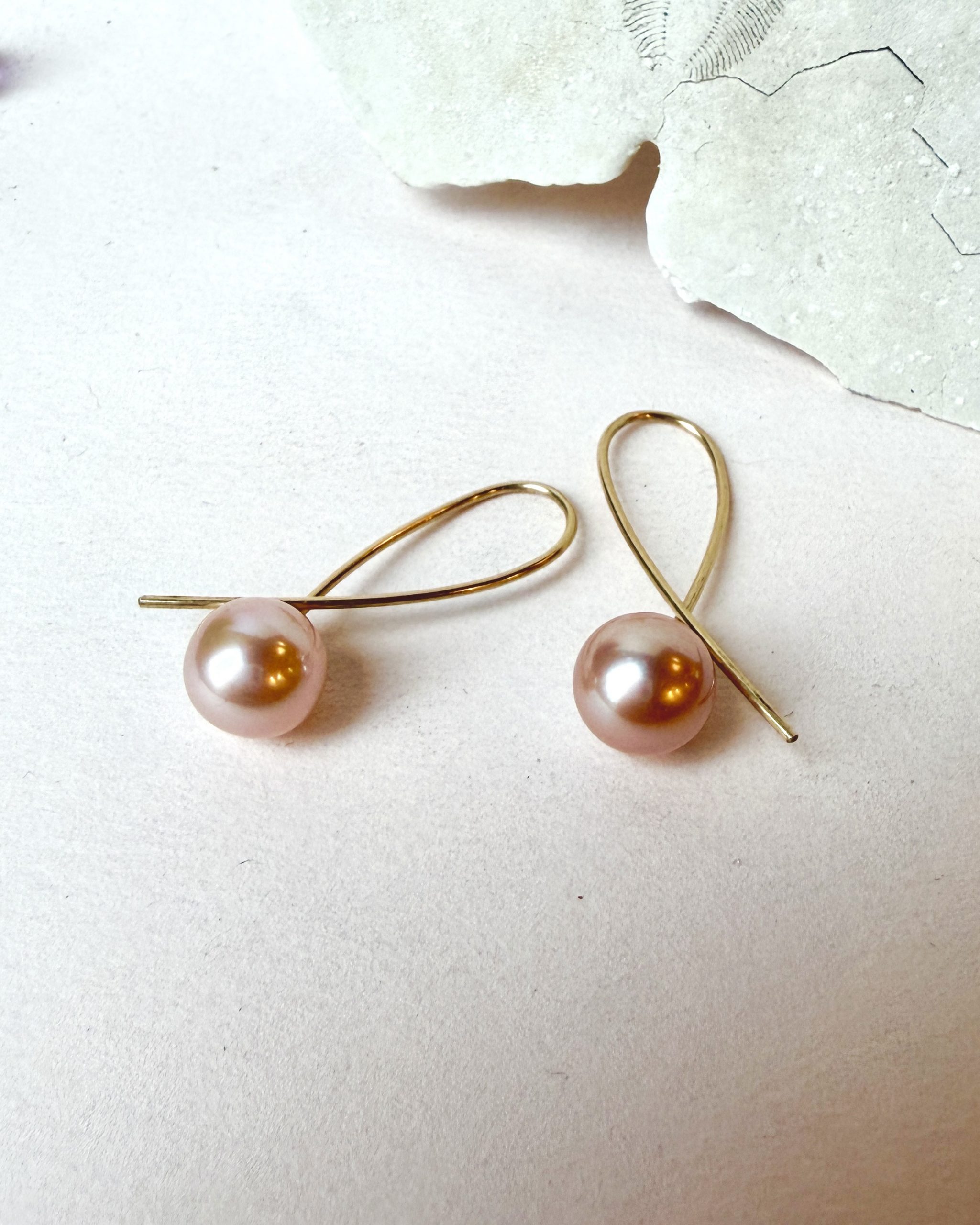 Pink river pearls on handmade 18 karat gold SLØJFE earrings.